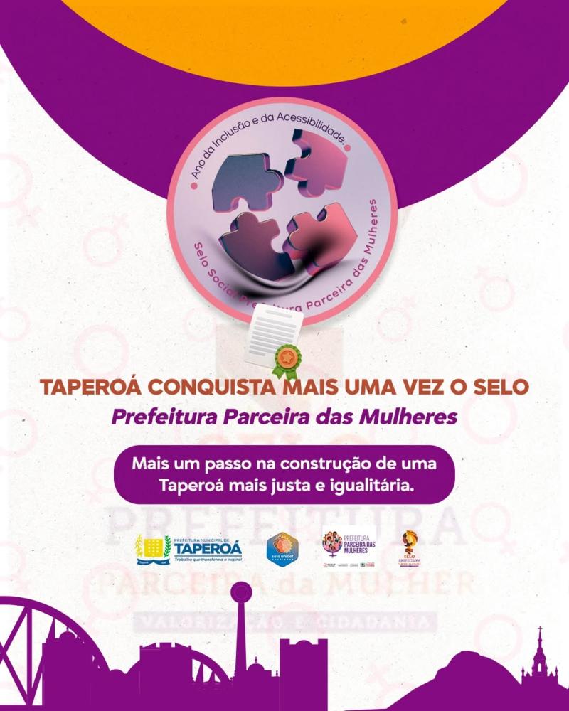 O município de Taperoá foi novamente reconhecido com o Selo Prefeitura Parceira das Mulheres, reafirmando o compromisso da gestão municipal com a promoção da igualdade de gênero, inclusão e acessibilidade.