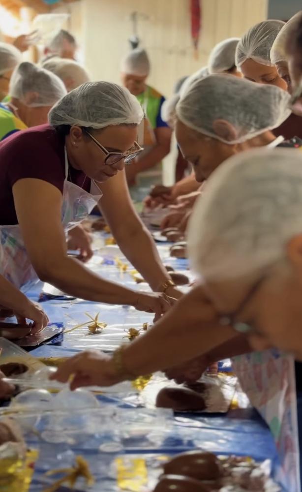Durante a oficina, os participantes tiveram a oportunidade de aprender, na prática, todas as etapas da produção dos ovos de Páscoa, em um momento marcado por troca de experiências, aprendizado e integração. A atividade, realizada pela primeira vez com as equipes da Assistência Social, trouxe uma proposta dinâmica e acolhedora, promovendo o fortalecimento dos vínculos e o bem-estar dos idosos.