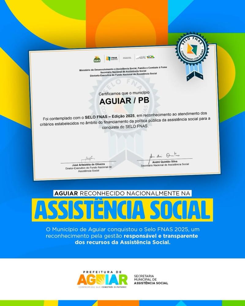 Assistência Social Aguiar conquista reconhecimento nacional na assistência social com Selo FNAS 2025