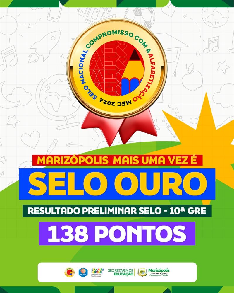 Marizópolis-PB Marizópolis conquista Selo Ouro e alcança 98,15% de alfabetização na idade certa